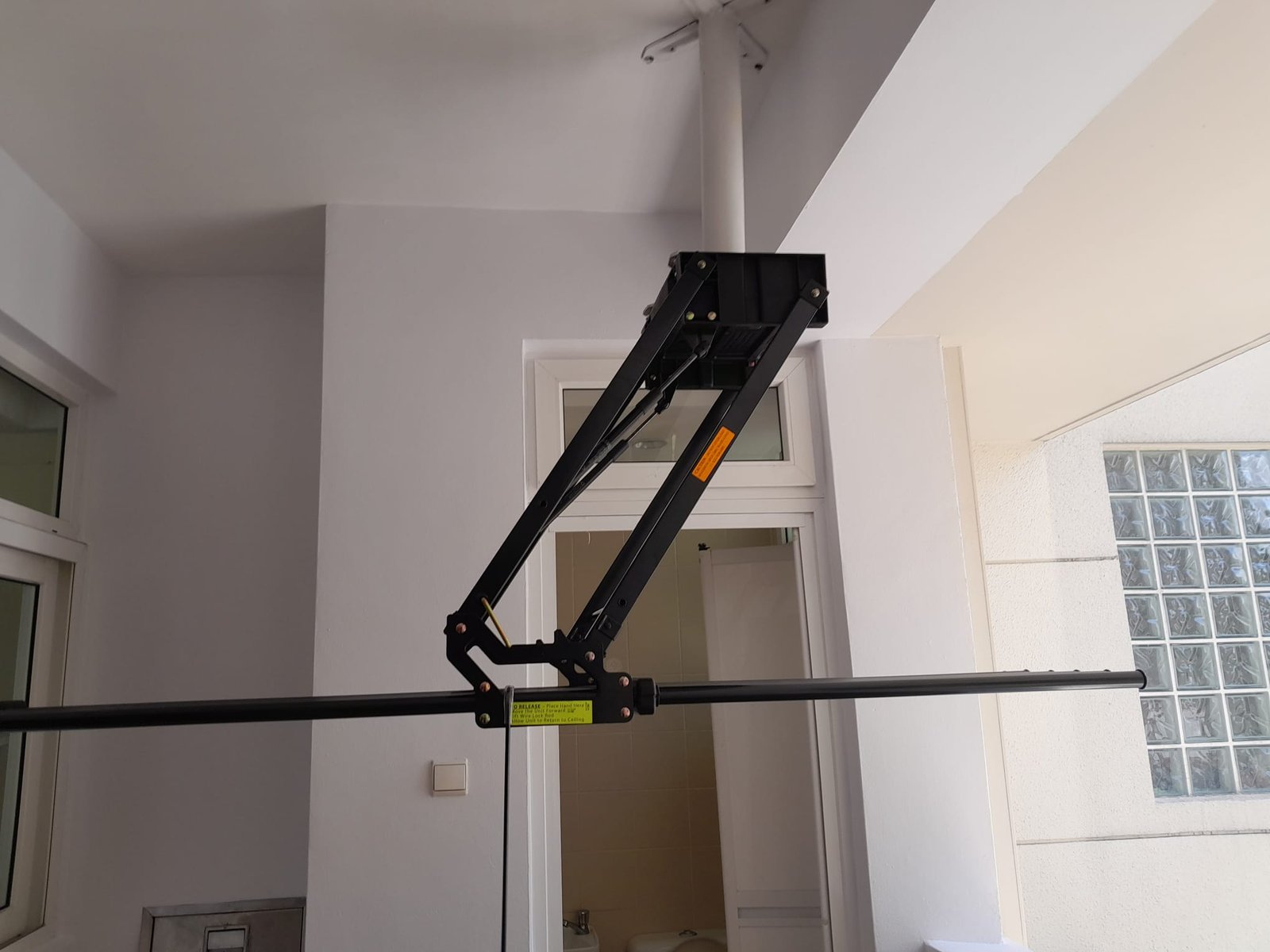 EZ Hi-Dry is smooth-running and easy to use. Simply pull it down to hang laundry, and it can be moved outdoors or back indoors in one easy and quick motion. It takes a minimum of effort to pull down, and returns easily to the ceiling for neat storage.