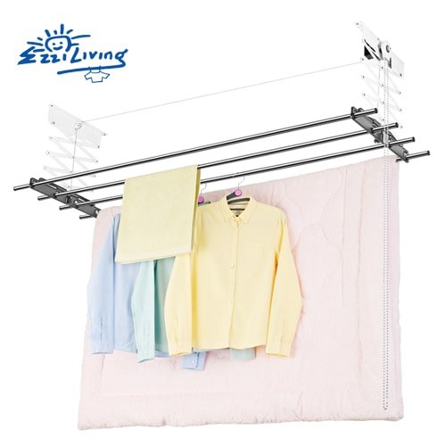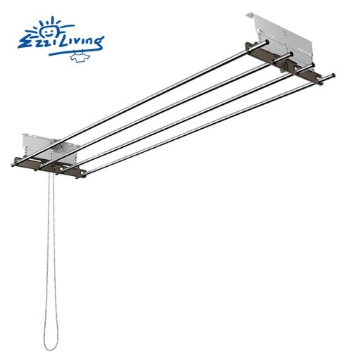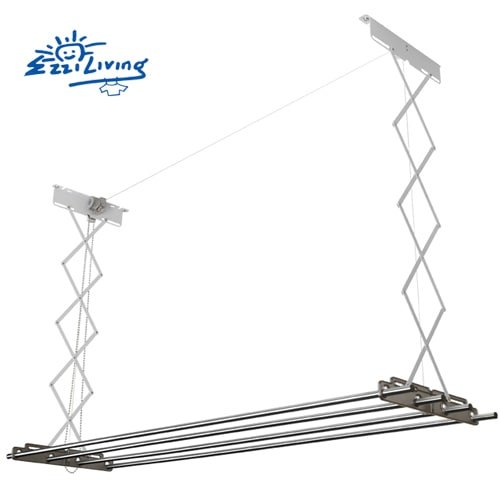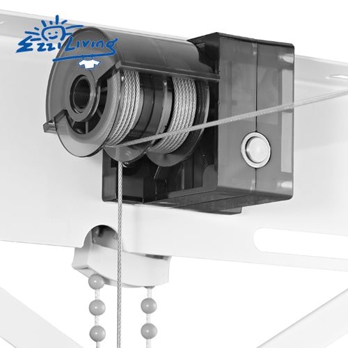 EZ Lift 5 can be mounted on the ceiling or wall via a set of brackets. It offers only upwards/ downwards motion for air-drying wash. EZ Lift 5 consists of 4 poles and is activated by a gear and clutch mechanism. The gear helps to lighten the load when the system is raised to the ceiling. The clutch mechanism prevents over-loading. Worm gear deceleration technology helps customer to raise and pulling down the drying rack with less strength. The drying rack position can be adjusted by pulling up and down the ball-chain.