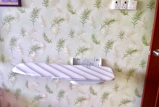 EZ Wall Mount Ironing Board’s design is space saving as it can be folded compactly and kept way after use. To use, unfold the board and swivel it into position.